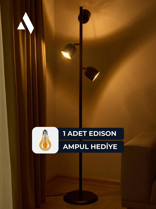Horion Modern Siyah Lambader – 3 Başlıklı, Ayarlanabilir Metal Gövde, Şık ve Dekoratif (Ev & Ofis Uyumlu)