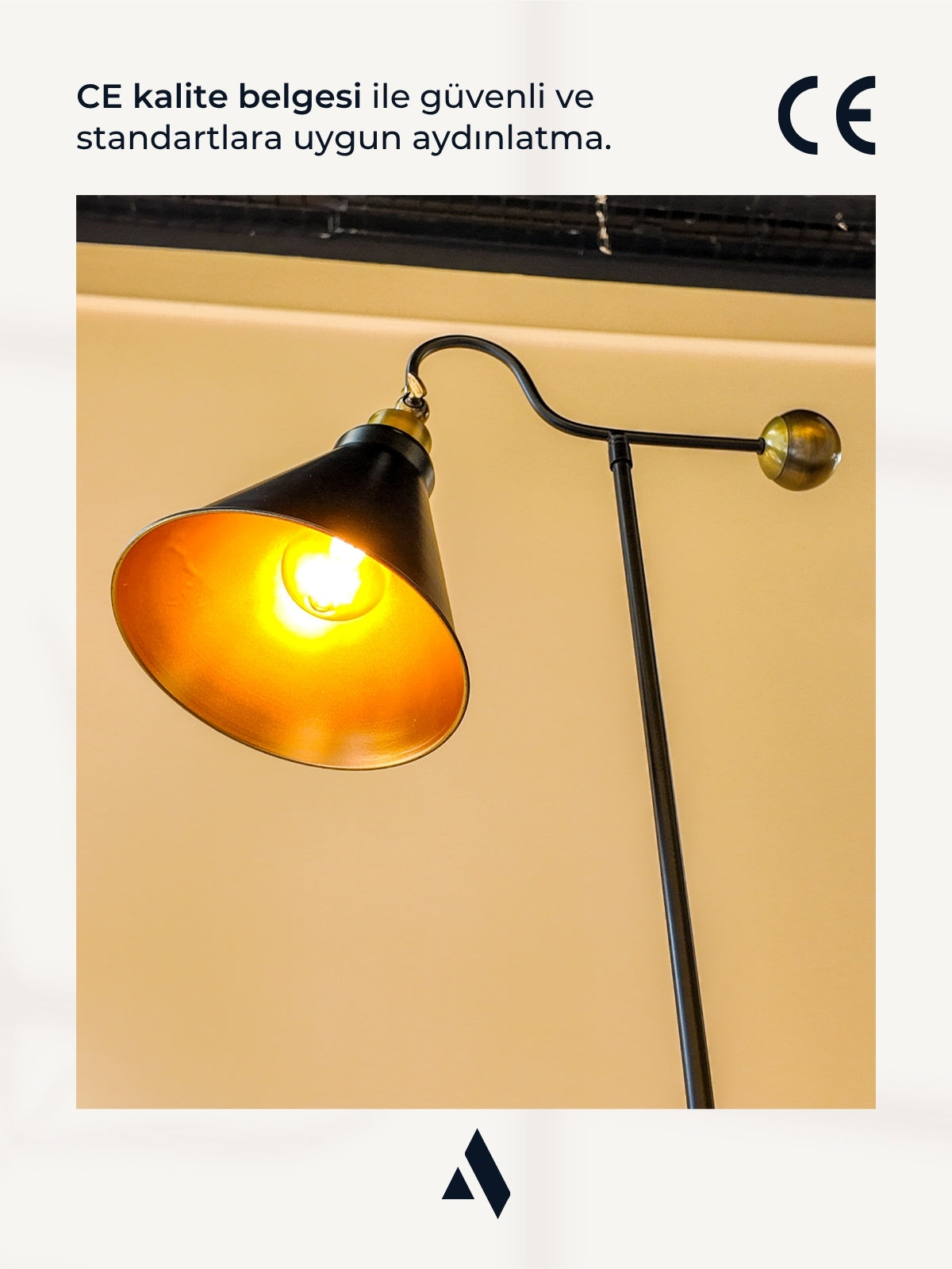 siyah lambader, metal lambader, gold detaylı lambader, ayarlanabilir lambader başlığı, modern salon lambaderi, okuma lambası siyah, dekoratif ayaklı lamba, rustik ampul hediyeli lambader, E27 uyumlu lamba, arapuar anahtarlı lamba, uzun kablolu lambader, kolay kurulum lambader, CE belgeli lamba, yerli üretim lambader, iç mekân aydınlatma ürünü, şık lamba modelleri, Alldesco lambader