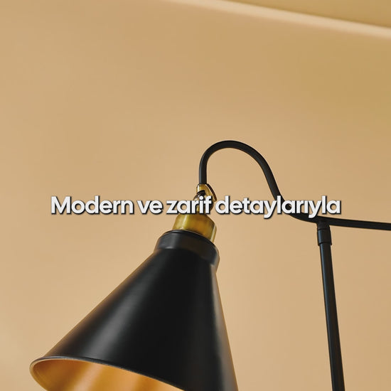 Ardine Siyah Metal Lambader – Ayarlanabilir Başlıklı, Gold Detaylı Modern Aydınlatma